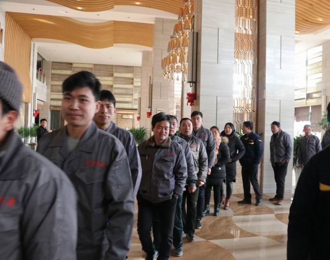 2月8日,洛阳汉子木业“2018欢乐年会”在洛阳凤翔温泉酒店隆重举行,年会有歌曲、小品、手语表演等形式,对过去一年的先进工作者、***班组长、五好家庭等给予表彰。何董事长、杨总经理为2017年作了重要工作总结。